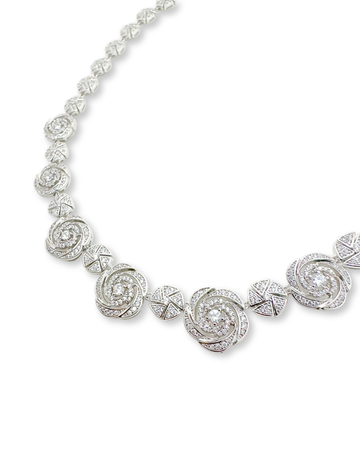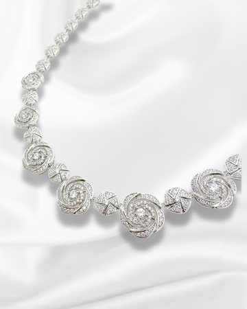 カメリアの花を連ねた、華やかさと品格を併せ持つネックレス。