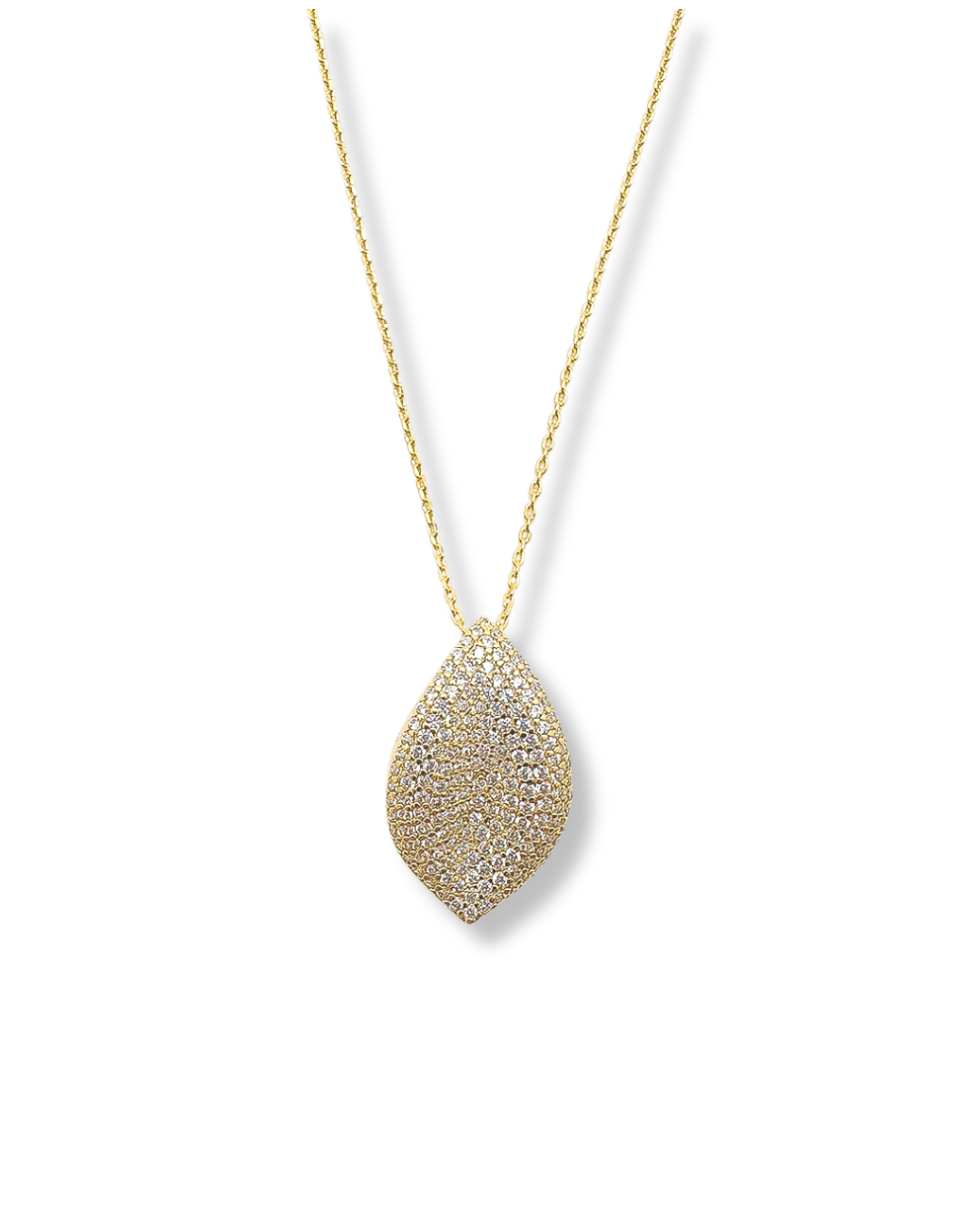 繊細な煌めきが美しく敷き詰められた一枚葉のネックレス。