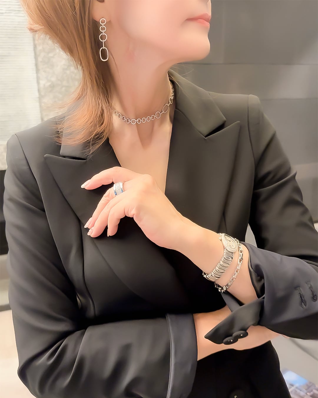 繊細なデザインと細やかな煌めきで、上品でありながら